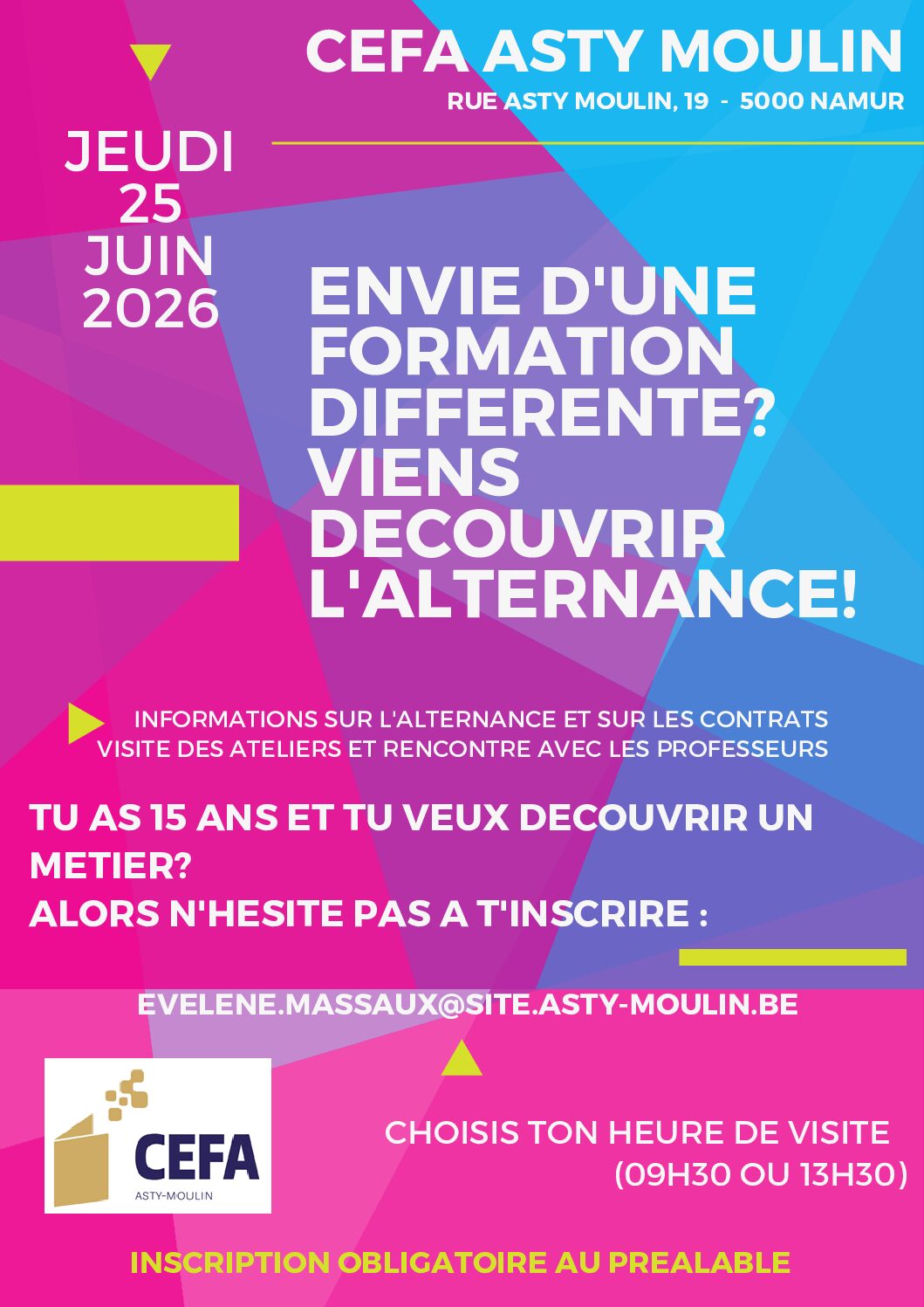 Nous vous invitons à consulter le règlement des études et le règlement d’ordre intérieur sur le site Internet du Centre Asty-Moulin https://www.asty-moulin.be/ En cas